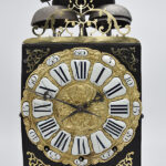 Uit een verzameling van Lantaanklokken komt deze Engelse Wing. Nog helemaal in de gevonden staat.Gesigneerd met IP en gedateerd 1677 in de fret. De fret mist het bovenste puntje. Opmerkelijk is de smalle ring. Klok heeft geen wekker en heeft er ook nooit ingezeten. Mooie typische Engelse gravering in de binnenspiegel en front. Prachte originele wijzer van ijzer.. Uitstekend object voor een hobby klokkenmaker..