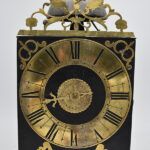 Bijzonder mooi 18 eeuws eenwizerig klokje met ankergang met lange slinger, zeer vroeg werkje. Skelet is geheel van ijzer raderen van messing. Dit Type herrinnert zich sterk aan de Late Gotische exemplaren. Zeer fraai uurwerk met prachtige details. Klokje werk perfect en is compleet met 2 hoofdgewichten e 2 contra gewichtjes.