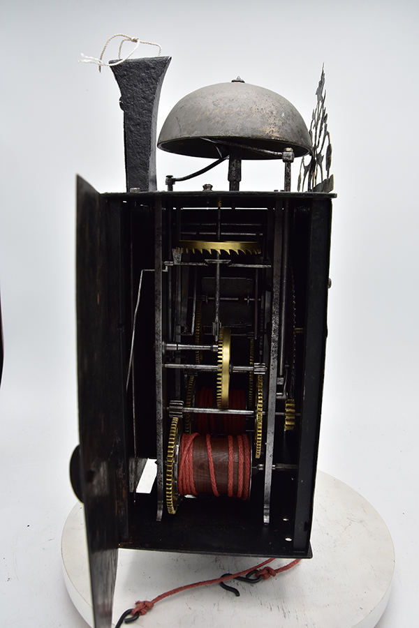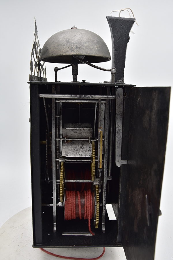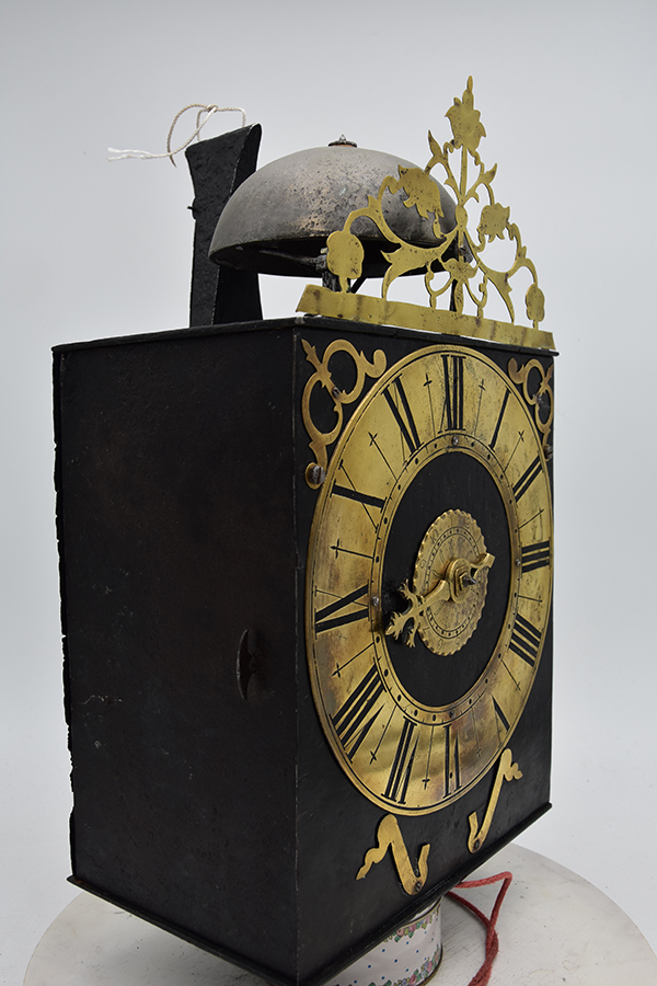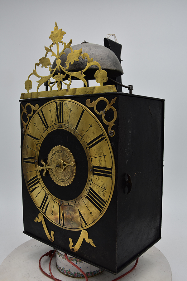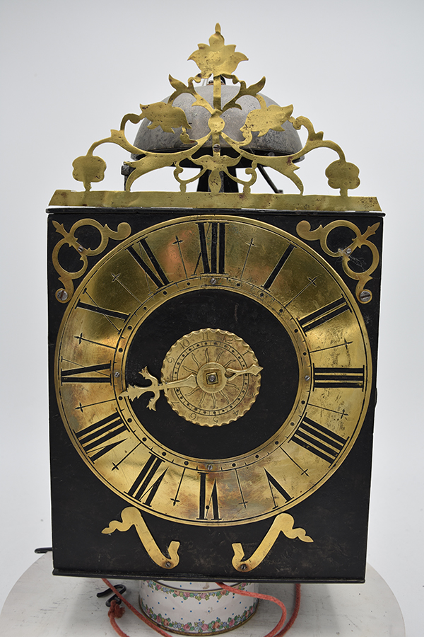 Uit een prive collectie komt deze comtoiseklok, slechts 21,5 cm breed, Niet gesigneerd. Klok komt uit de tijd van de tweede = derde kwart 18e eeuw. . Klok verkeerd nog in de gevonden staat en is heel netjes onderhouden.. Wekker ontbreekt. Dwangslag op het halve uur. Deuren zijn origineel. Klok werkt zoals het hoor.t . Compleet met gewichten en slinger flapsleutel en ophangbeugel. Prijs nog overeen te komen prijsindicatie rond de 1250 euro.
