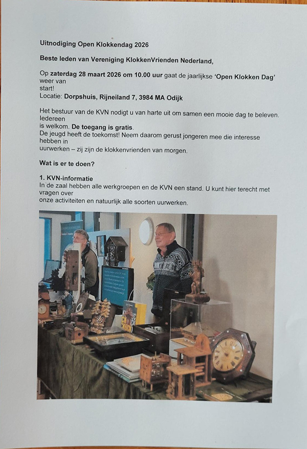21 feb 1 Open klokkendag 2026 in ODIJK Geplaatst op 08:33h in Comtoise, Diverse klokken, Lantaarn, Pendules door comtoiseverzamelaar
