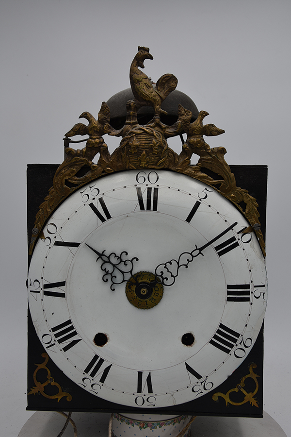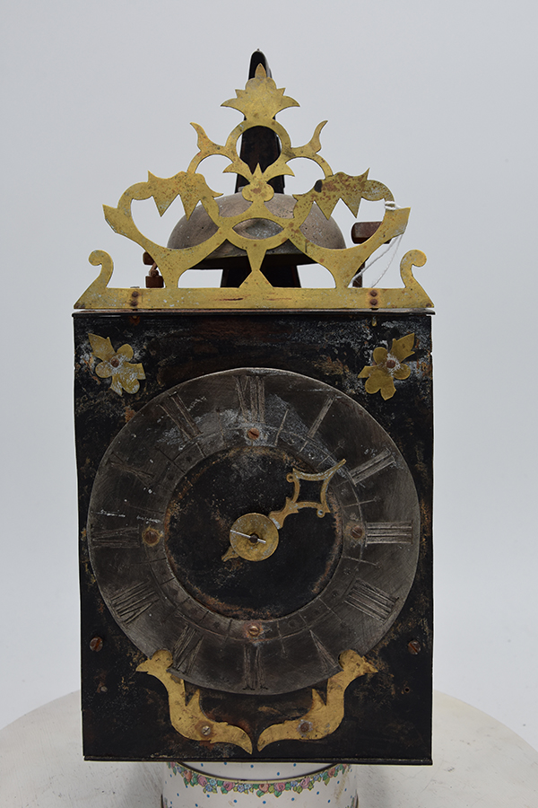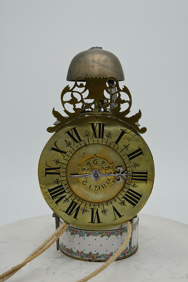 Prachtige vroege Franse lantaarnklok uit de 18e eeuw, met wekkerfunctie en nog in originele staat. De wekker bevindt zich in de kast en niet erbuiten. Compleet met gewichten, inclusief wekkergewichten. De fret is prachtig gegraveerd, evenals de binnenspiegel. Gesigneerd met Saint André à Bordeaux. Volgens...
